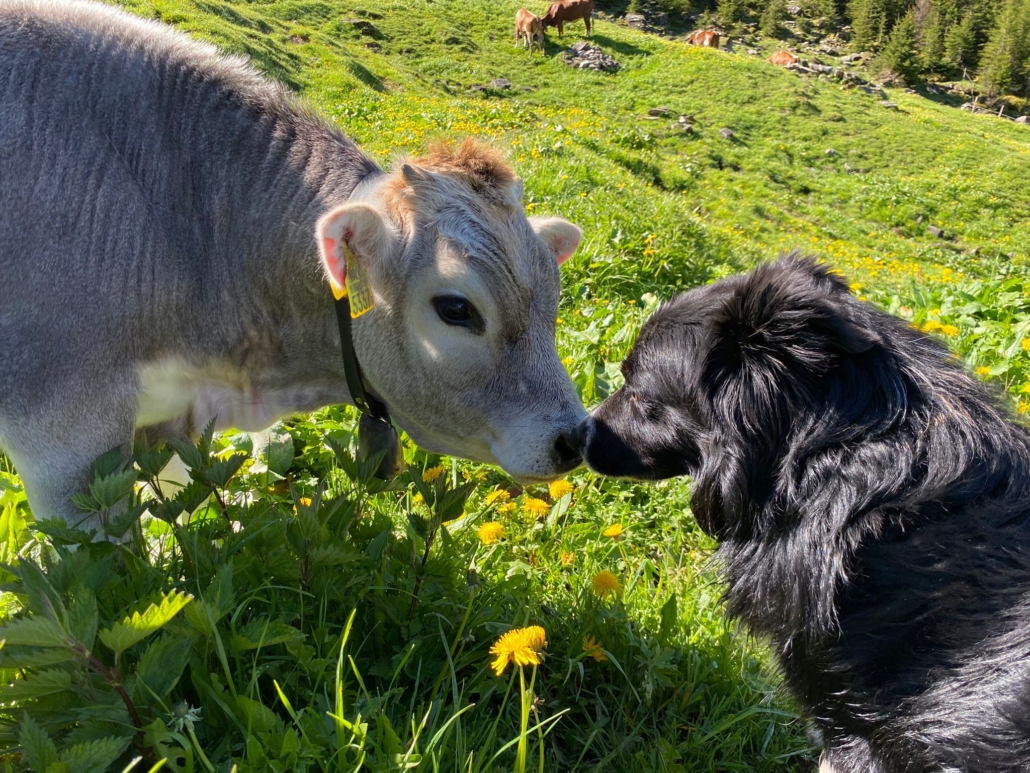 Nebst den Nutztieren halten wir ca. 10 Hühner, ein paar Enten, 4 Katzen und unsere Hütehunde Wisp und Tess.